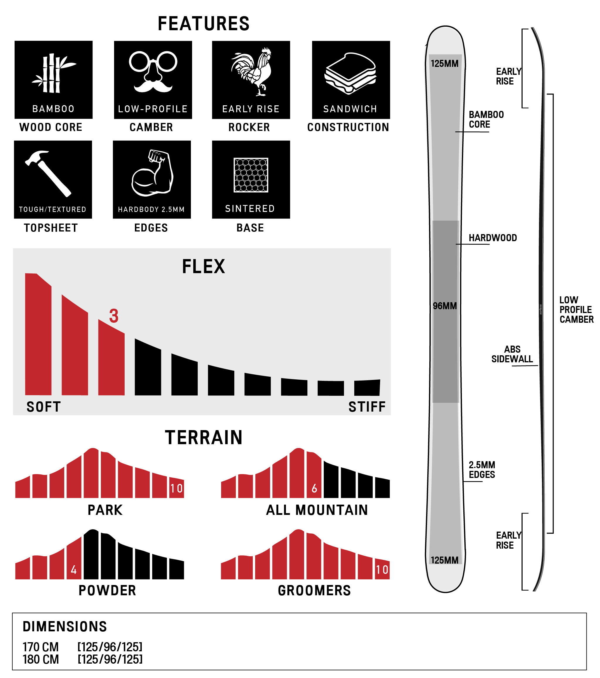 “Built from the ground up for park and street skiing, The Wraith is a lightweight yet heavy-duty ski with a bamboo wood core, low-profile camber with hybrid early rise, thick 2.5mm edges, reinforced hardwood underfoot, and a durable textured topsheet create a playful, stable platform made to handle everyday usage”